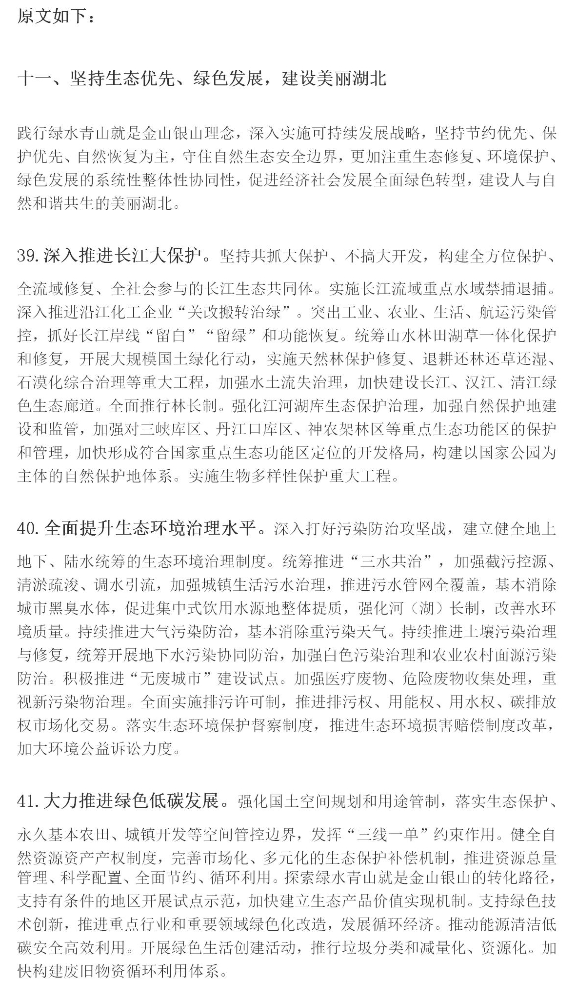 2020年12月2日中國(guó)共產(chǎn)黨湖北省第十一屆委員會(huì)第八次全體會(huì)議通過(guò)《中共湖北省委關(guān)于制定全省國(guó)民經(jīng)濟(jì)和社會(huì)發(fā)展第十四個(gè)五年規(guī)劃和二〇三五年遠(yuǎn)景目標(biāo)的建議》。 建議提到,“十三五”時(shí)期,湖北地區(qū)生產(chǎn)總值相繼邁過(guò)3萬(wàn)億元、4萬(wàn)億元大關(guān),生態(tài)環(huán)境加快改善,長(zhǎng)江大保護(hù)“...
