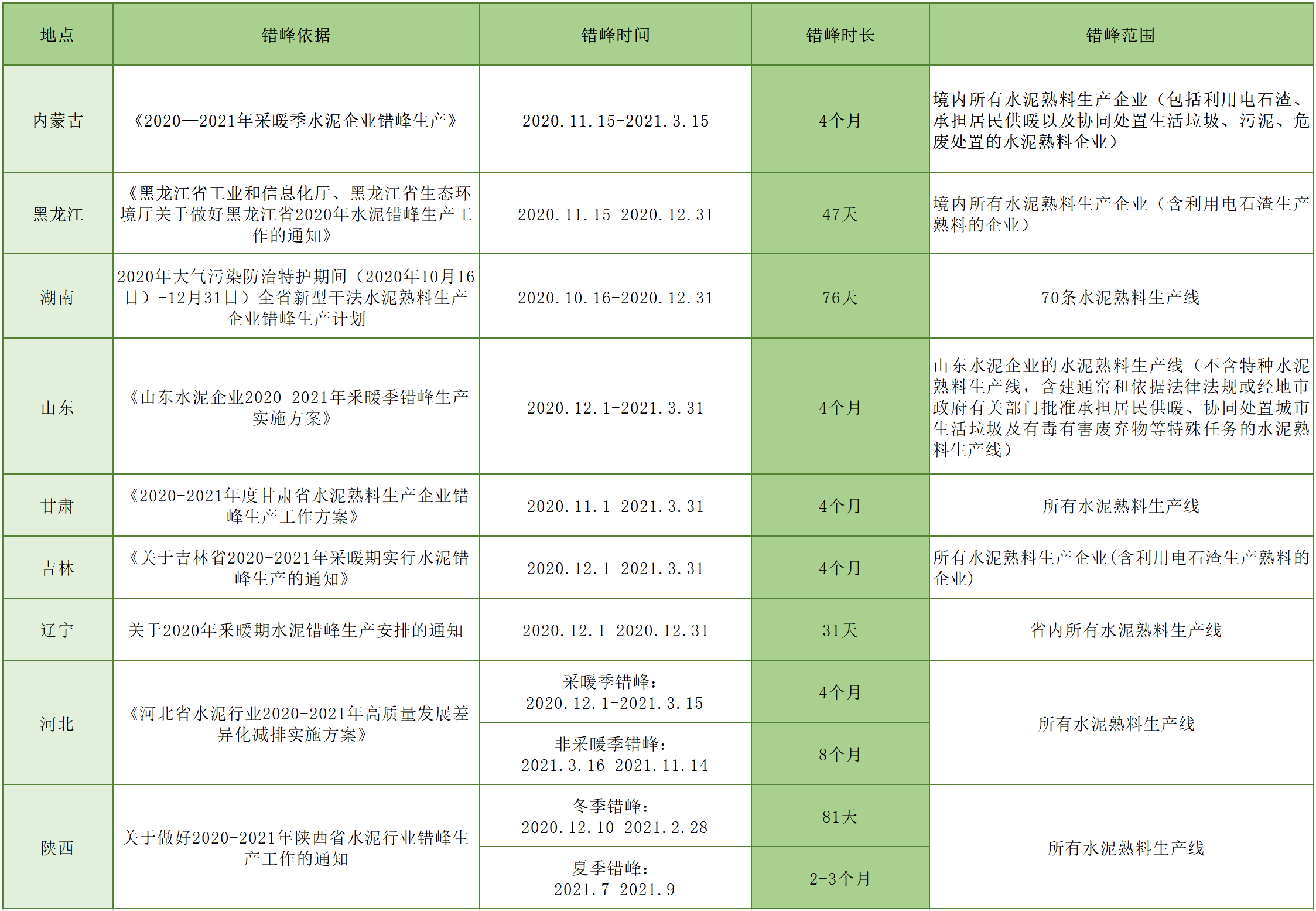 2020年接近尾聲,又到一年秋冬污染治理攻堅期,“錯峰生產(chǎn)”4個字也開始挑各大生產(chǎn)企業(yè)的神經(jīng),尤其是高污染排放企業(yè)。 如水泥行業(yè),就首當其沖。(僅供參考) 目前,已經(jīng)有不少省市陸續(xù)發(fā)布了錯峰生產(chǎn)計劃,短期的截至12月底,長期的甚至橫跨了整個2021年,未雨綢繆之態(tài)盡顯。 由上...