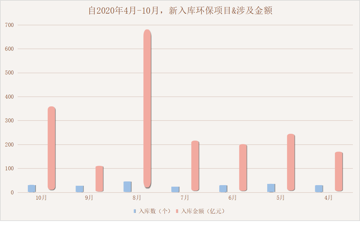 2020年11月27日,財政部PPP中心公開了2020年10月發(fā)布的106個新入管理庫項目。其中,有31項環(huán)保項目。 自2020年4月到10月,財政部PPP中心公開的新入管理庫環(huán)保項目,以及涉及金額如圖: 4到10月期間,8月入庫的環(huán)保項目明顯更多,更引人注目的是其投資金額。從入庫項目來看,8月有4...