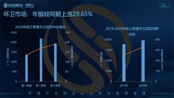 E20研究院數據中心獲悉,2020年前三季度,環(huán)衛(wèi)市場共計釋放超9800個環(huán)衛(wèi)運營服務類項目(含標段),新增年服務金額495億余元,新增合同額1576億余元。 上圖為2020年前三季度環(huán)衛(wèi)項目分季度中標情況,其中第二季度中標項目數量最多,第三季度新增年服務金額最高。右圖為與2019年同期比較,202...