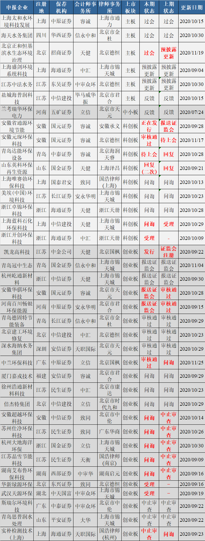 環(huán)保IPO持續(xù)火熱。根據環(huán)保汪最新發(fā)布的《環(huán)保行業(yè)投行報(11月刊)》顯示,11月,金達萊成功上市;正和生態(tài)、中蘭環(huán)保、元琛科技3家過會;開創(chuàng)環(huán)保申報科創(chuàng)板獲受理;華新環(huán)保、天源環(huán)保申報創(chuàng)業(yè)板獲受理。在審IPO共38家,其中:主板6家、中小板1家、科創(chuàng)板9家、創(chuàng)業(yè)板22家;已受理3家,反饋或問詢14...