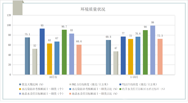 生態(tài)環(huán)境部近日向媒體通報了2020年10月和1-10月全國地表水、環(huán)境空氣質(zhì)量狀況。 地表水 (一)總體情況 2020年10月,1940個國家地表水考核斷面中,水質(zhì)優(yōu)良(Ⅰ-Ⅲ類)斷面比例為83.3%,同比上升7.5個百分點;劣Ⅴ類斷面比例為0.8%,同比下降2.1個百分點。主要污染指標為化學需氧量...