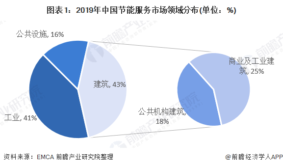 節(jié)能服務(wù)分布在工業(yè)和建筑領(lǐng)域 根據(jù)中國(guó)節(jié)能協(xié)會(huì)節(jié)能服務(wù)產(chǎn)業(yè)委員會(huì)(EMCA)2019年對(duì)合同能源管理項(xiàng)目進(jìn)行調(diào)查分析的結(jié)果顯示,按照節(jié)能三大領(lǐng)域分類(lèi),工業(yè)領(lǐng)域項(xiàng)目有項(xiàng)目總數(shù)的41%;建筑領(lǐng)域項(xiàng)目有占項(xiàng)目總數(shù)的43%,其中公共機(jī)構(gòu)建筑18%,商業(yè)及工業(yè)建筑25%;公共設(shè)施項(xiàng)目項(xiàng)目總數(shù)的16%。 近年來(lái)...