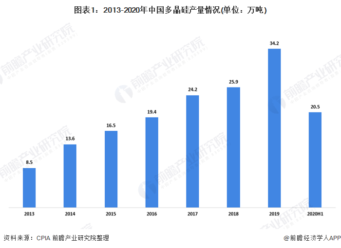 1、多晶硅產(chǎn)量大幅上漲 根據(jù)中國(guó)光伏行業(yè)協(xié)會(huì)統(tǒng)計(jì)數(shù)據(jù),截至2019年底,國(guó)內(nèi)多晶硅產(chǎn)量在萬(wàn)噸以上的企業(yè)有6家,其產(chǎn)量約為28.7萬(wàn)噸,占總產(chǎn)量的83.9%。2019年我國(guó)多晶硅產(chǎn)量達(dá)到34.2萬(wàn)噸,同比增長(zhǎng)32.0%。2020年上半年,多晶硅產(chǎn)量為20.5萬(wàn)噸,同比增加32.3%。 在硅片方面,我國(guó)...