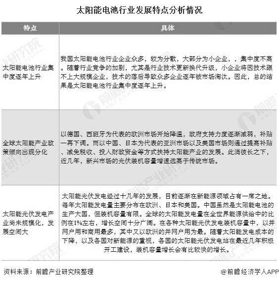 1、2019年中國太陽能電池產(chǎn)量突破億千瓦 太陽能電池又稱為“太陽能芯片”或“光電池”,是一種利用太陽光直接發(fā)電的光電半導(dǎo)體薄片。它只要被滿足一定照度條件的光照到,瞬間就可輸出電壓及在有回路的情況下產(chǎn)生電流。在物理學(xué)上稱為太陽能光伏(Photovolt...