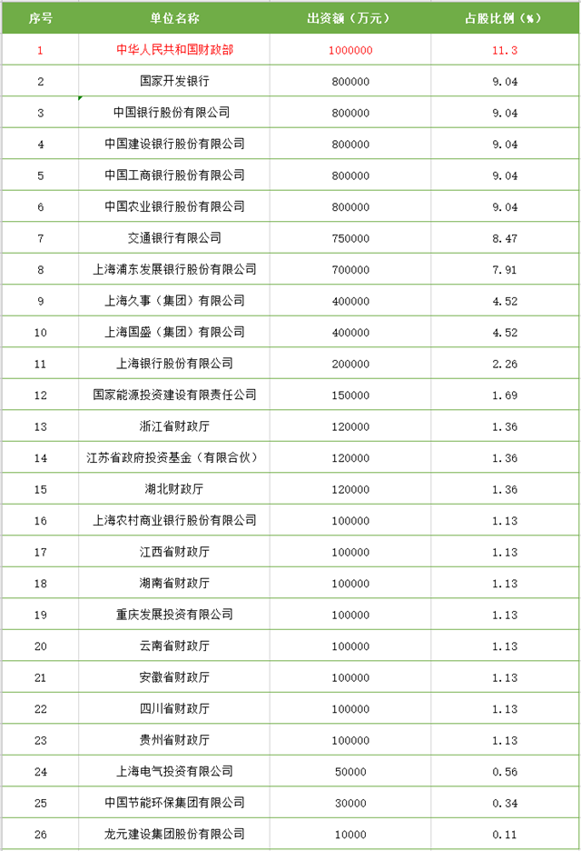 885億元!國家綠色發(fā)展基金股份有限公司在上海揭牌運(yùn)營,由財(cái)政部、生態(tài)環(huán)境部、上海市共同發(fā)起設(shè)立。此次募集資金中,財(cái)政部出資100億元,占股11.3%,長江沿線11個(gè)省市、部分金融機(jī)構(gòu)和相關(guān)行業(yè)企業(yè)也參與其中。 2019年生態(tài)環(huán)境部就曾透露,國家綠色發(fā)展基金2020年將正式啟動(dòng)運(yùn)營。 據(jù)國家綠色發(fā)展...