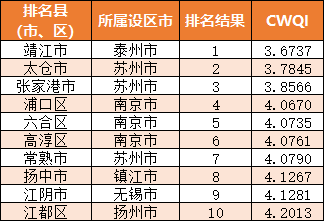 2022年1—5月江蘇省縣(市、區(qū))地表水環(huán)境質(zhì)量排名