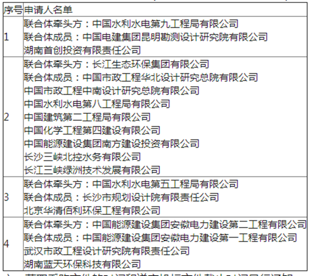 日前,岳陽(yáng)市中心城區(qū)污水系統(tǒng)綜合治理工程PPP項(xiàng)目(二期)發(fā)布資格預(yù)審結(jié)果,四家聯(lián)合體入圍,競(jìng)標(biāo)選手仍以“央企+設(shè)計(jì)院+環(huán)境企業(yè)”的形式出征,這也是近年來(lái)水環(huán)境治理項(xiàng)目比較常用的聯(lián)合方式。其中,中國(guó)水利水電第九工程局聯(lián)合湖南首創(chuàng)投資,長(zhǎng)江環(huán)保牽手長(zhǎng)沙三峽北控水務(wù)。資審結(jié)果具體...
