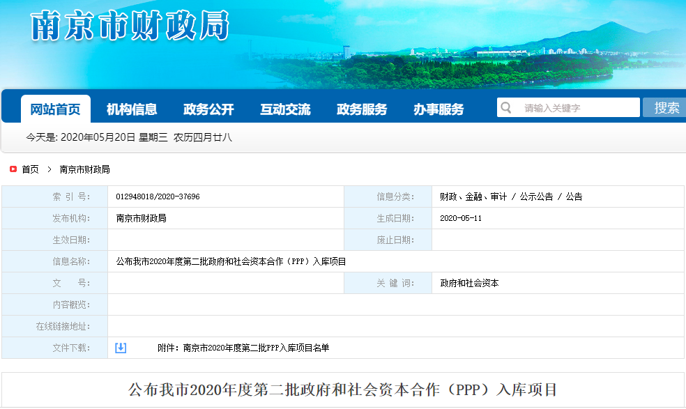 日前,南京發(fā)布南京市2020年度第二批PPP入庫項目名單。包括餐廚垃圾處理、地下空間建設(shè)兩個PPP項目。詳情如下: 公布我市2020年度第二批政府和社會資本合作(PPP)入庫項目 根據(jù)《江蘇省財政廳關(guān)于2020年度第二批政府和社會資本合作(PPP)項目入庫和試點的通知》(蘇財金〔2020〕42號),...