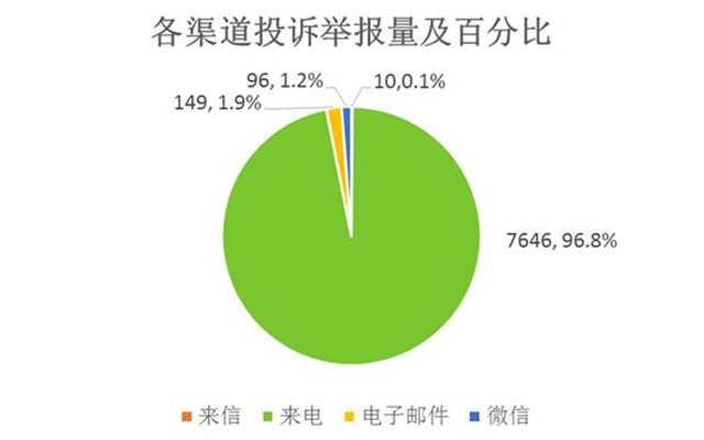 2020年4月,共受理生態(tài)環(huán)境投訴舉報事項7901件,其中市生態(tài)環(huán)境局接收453件、市民熱線服務(wù)中心12369專席接收7448件,已辦結(jié)7664件,正在辦理中237件。 一、生態(tài)環(huán)境投訴舉報按受理渠道分類 受理的生態(tài)環(huán)境投訴舉報事項按受理渠道分:來信10件、來電7646件、電子郵件149件、微信96...