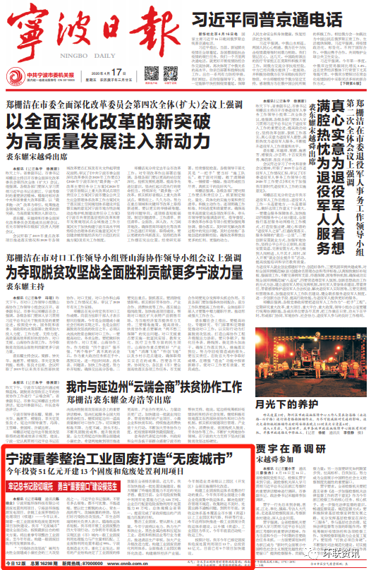 文章導(dǎo)讀新的一周始,回顧上周一周新聞,分析行業(yè)動(dòng)態(tài),部署新的一周工作。◆◆ ◆一、浙江寧波投資51億元開(kāi)建13個(gè)固廢和危廢處置項(xiàng)目 重拳整治工業(yè)固廢打造“無(wú)廢城市”“整治工業(yè)固廢,要從源頭上減量?!苯衲陮幉▽⒁噪娏Α崃ιa(chǎn)和供應(yīng)業(yè),黑色金屬冶煉和壓延加工業(yè),造紙和紙制品業(yè)等行業(yè)為重點(diǎn),推進(jìn)清潔生產(chǎn)...