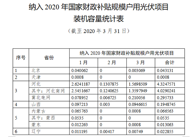 按照《國家能源局關(guān)于2020年風電、光伏發(fā)電項目建設有關(guān)事項的通知》(國能發(fā)新能〔2020〕17號)和《國家能源局綜合司關(guān)于2019年戶用光伏項目信息公布和報送有關(guān)事項的通知》(國能綜通新能〔2019〕45號)關(guān)于戶用光伏項目管理有關(guān)要求,全國共有30個省份報送了戶用光伏項目信息(西藏無納入2020...