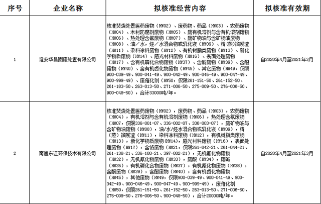 根據(jù)《危險(xiǎn)廢物經(jīng)營(yíng)許可證管理辦法》等有關(guān)規(guī)定,經(jīng)審核,現(xiàn)將擬頒發(fā)《危險(xiǎn)廢物經(jīng)營(yíng)許可證》企業(yè)予以公示,公示期為2020年4月8日-4月10日(3個(gè)工作日)。 原標(biāo)題:江蘇省生態(tài)環(huán)境廳擬頒發(fā)危險(xiǎn)廢物經(jīng)營(yíng)許可證的公示(2020年4月8日)