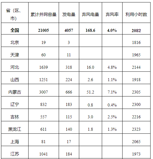 2019年風(fēng)電并網(wǎng)運(yùn)行情況