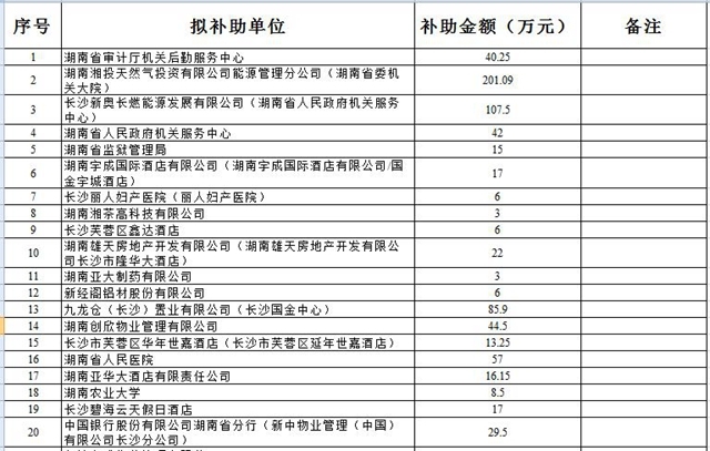 2019年長(zhǎng)沙燃?xì)忮仩t低氮改造市級(jí)補(bǔ)助資金撥付名單