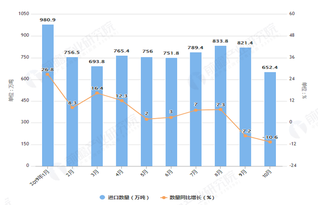 據(jù)海關(guān)總署統(tǒng)計(jì)數(shù)據(jù)顯示,2019年9月中國(guó)天然氣進(jìn)口量為821.4萬(wàn)噸,同比下降7.2%,進(jìn)口金額為3442百萬(wàn)美元,同比下降4.5%,2019年10月中國(guó)天然氣進(jìn)口量為652.4萬(wàn)噸,同比下降10.6%,進(jìn)口金額為2761.1百萬(wàn)美元,同比下降16.6%。 2019年1-10月中國(guó)天然氣進(jìn)口量及金...