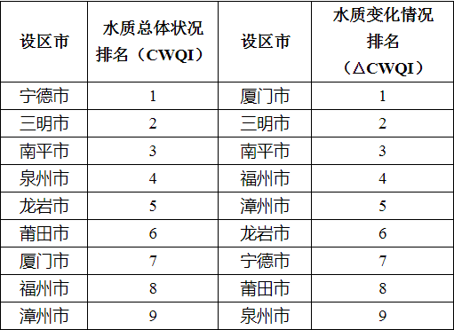 根據(jù)福建省148個(gè)省考斷面和587個(gè)小流域考核斷面的水質(zhì)監(jiān)測(cè)結(jié)果,參照生態(tài)環(huán)境部印發(fā)的《城市地表水環(huán)境質(zhì)量排名技術(shù)規(guī)定(試行)》,對(duì)2019年1-9月各城市水質(zhì)、重點(diǎn)流域水質(zhì)綜合指數(shù)等進(jìn)行排名。 一、設(shè)區(qū)市省考斷面水質(zhì)排名情況 2019年1-9月,按省考斷面評(píng)價(jià),各設(shè)區(qū)市水質(zhì)從相對(duì)較好開(kāi)始排名,依次...