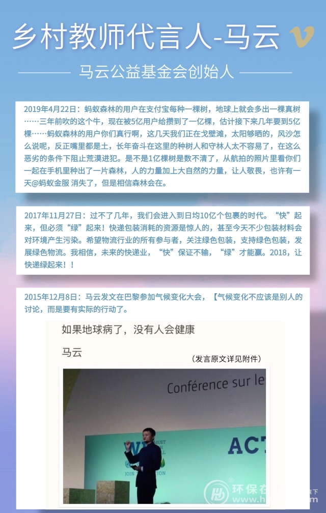 【馬云最后一天上班】,毫無(wú)意外杠杠滴上了熱搜。2019年9月10日,阿里巴巴20周年年會(huì),馬云正式卸任阿里董事局主席,并且發(fā)表了卸任演講。 洋洋灑灑一篇,環(huán)保在線就劃了一條重點(diǎn):【阿里巴巴只是我很多夢(mèng)想中的一個(gè)而已,我自己覺(jué)得我還很年輕,我自己覺(jué)得我有很多地方都想去玩玩、都想去折騰,很多事情像教育、...