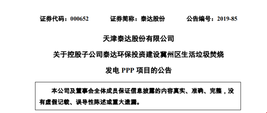7月25日,泰達股份(證券代碼:000652)發(fā)布公告稱,為進一步擴大生態(tài)環(huán)保產(chǎn)業(yè)規(guī)模,控股子泰達環(huán)保擬投資建設(shè)河北省衡水市冀州區(qū)生活垃圾焚燒發(fā)電PPP項目(以下簡稱“冀州項目”或“項目”)。項目總投資金額約為26,860萬元,位于冀州區(qū)城區(qū)西南3公里,衡水寶潔生活垃圾處理場西側(cè),占地80畝,由泰達...