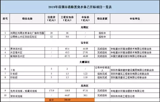 深圳放出超360億2019年黑臭水體治理工程,都花落誰家?