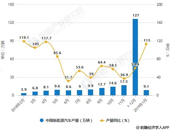 2019年1月中國新能源汽車行業(yè)產(chǎn)銷量分析 新政策優(yōu)勢進一步擴大市場