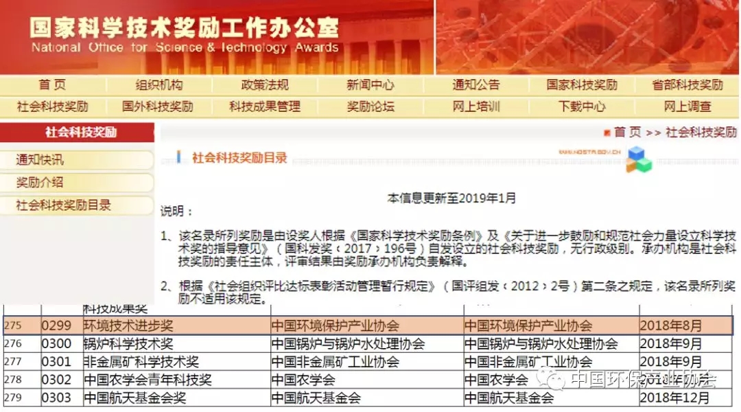 環(huán)境技術(shù)進步獎近日,中國環(huán)境保護協(xié)會設(shè)立的“環(huán)境技術(shù)進步獎”被正式納入國家科學(xué)技術(shù)獎勵工作辦公室(簡稱:國家科技獎勵辦)發(fā)布的《社會科技獎勵目錄》,并在國家科技獎勵辦官網(wǎng)公布。至此,“環(huán)境技術(shù)進步獎”成為全國性社會科技獎勵之一,接受國家科技獎勵辦的監(jiān)督和指導(dǎo),成為我國生態(tài)環(huán)境領(lǐng)域又一重要的科技獎項。...