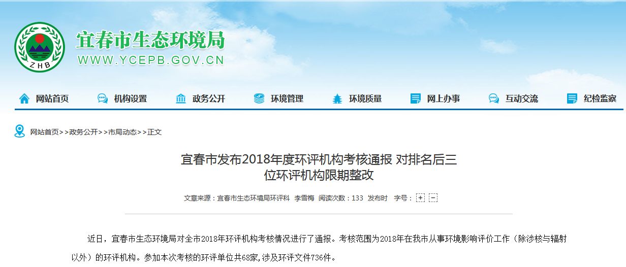 近日,宜春市生態(tài)環(huán)境局對全市2018年環(huán)評機構(gòu)考核情況進行了通報。考核范圍為2018年在我市從事環(huán)境影響評價工作(除涉核與輻射以外)的環(huán)評機構(gòu)。參加本次考核的環(huán)評單位共68家,涉及環(huán)評文件736件??己朔秩粘?己撕蛯<壹夹g(shù)復(fù)核兩部分。從日??己饲闆r看,我市環(huán)評文件的編制基本符合國家有關(guān)法律法規(guī)和環(huán)境...