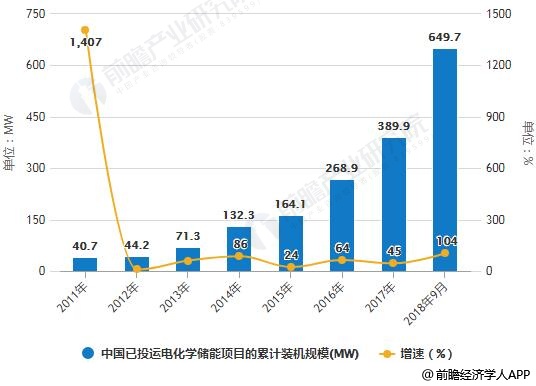 2018年,我國(guó)電化學(xué)儲(chǔ)能出現(xiàn)爆發(fā)式增長(zhǎng),其中電網(wǎng)側(cè)儲(chǔ)能新增裝機(jī)比重更是首次超過(guò)用戶側(cè),躍居第一位,占比達(dá)到42%。在地方層面,江蘇、河南、湖南等地陸續(xù)開(kāi)展了百兆瓦級(jí)別的電網(wǎng)側(cè)儲(chǔ)能項(xiàng)目建設(shè)。 從總體看,我國(guó)電化學(xué)儲(chǔ)能市場(chǎng)在近年呈現(xiàn)逐步上升的趨勢(shì)。2011——2017年,我國(guó)電...