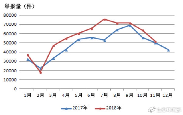 2018年1-11月全國總舉報(bào)量為657702件,11月全國環(huán)保舉報(bào)管理平臺(tái)共接到環(huán)保舉報(bào)51724件。其中“12369”環(huán)保舉報(bào)熱線電話共24998件,微信舉報(bào)20227件,網(wǎng)上舉報(bào)6499件。 一、秋冬季舉報(bào)持續(xù)下降 2018年11月,全國環(huán)保舉報(bào)管理平臺(tái)(以下簡稱&ld...