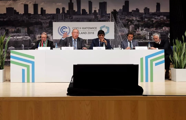 當(dāng)?shù)貢r(shí)間2018年12月12日,基礎(chǔ)四國(guó)新聞發(fā)布會(huì)在聯(lián)合國(guó)氣候變化卡托維茲大會(huì)新聞發(fā)布廳舉行,表達(dá)四國(guó)希望推動(dòng)卡托維茲大會(huì)取得成功、共同維護(hù)多邊機(jī)制有效性的決心和立場(chǎng)。中國(guó)應(yīng)對(duì)氣候變化事務(wù)特別代表解振華、印度環(huán)境部副部長(zhǎng)阿倫·梅塔(A K Mehta)、南非代表團(tuán)團(tuán)長(zhǎng)德里克&middo...