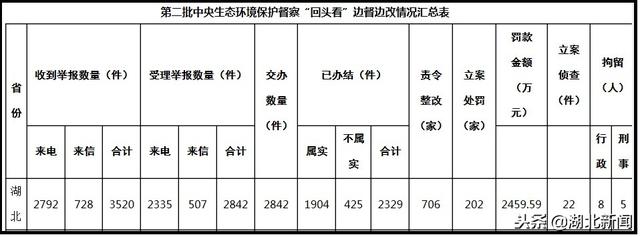 日前,生態(tài)環(huán)境部網(wǎng)站發(fā)文《第二批中央生態(tài)環(huán)境保護(hù)督察“回頭看”進(jìn)駐工作結(jié)束》。文中稱,截至12月6日,共收到群眾舉報49561件,經(jīng)梳理分析,受理有效舉報38133件,合并重復(fù)舉報后向地方轉(zhuǎn)辦37679件。地方已辦結(jié)26873件,其中,責(zé)令整改12240家;立案處罰2991家,罰款21414.36萬...