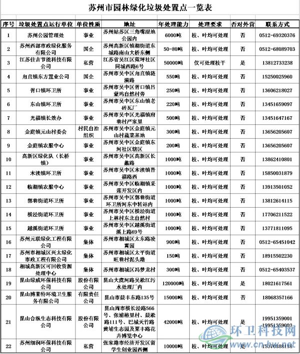 環(huán)衛(wèi)科技網(wǎng)訊,10月18日,蘇州市園林和綠化管理局在網(wǎng)上發(fā)布《蘇州市園林綠化垃圾處置點信息公示》,公示顯示,蘇州共有22個園林綠化垃圾處置點運行單位,年處理能力達(dá)25.24余萬噸。22個運行單位中,有4家公司(兩家股份有限公司,兩家私營單位)對外營運,年處理能力總計22.2萬噸。 下表為整理《蘇州發(fā)...