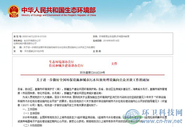生態(tài)環(huán)境部發(fā)文,垃圾處理等四類環(huán)保設(shè)施要向公眾開放了