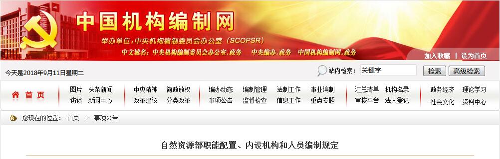 重磅!《自然資源部職能配置、內(nèi)設(shè)機(jī)構(gòu)和人員編制規(guī)定》