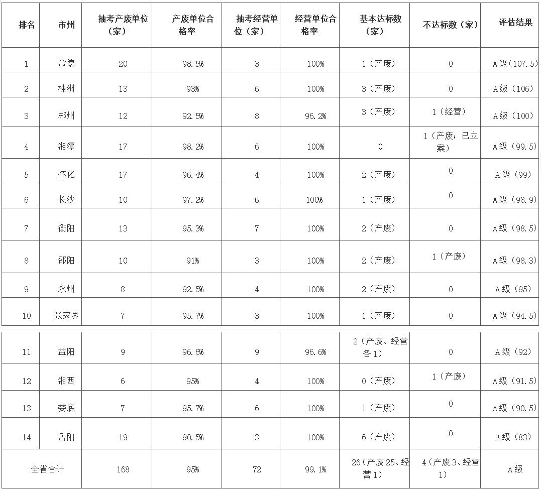 關于湖南省2021年度危險廢物規(guī)范化環(huán)境管理評估結果的公示 根據(jù)生態(tài)環(huán)境部《“十四五”全國危險廢物規(guī)范化環(huán)境管理評估工作方案》相關要求,我廳于今年年初,組織對全省14個市州2021年度危險廢物規(guī)范化環(huán)境管理工作進行了評估,現(xiàn)將相關情況公示如下: 省級評估,共計對14個市州16...