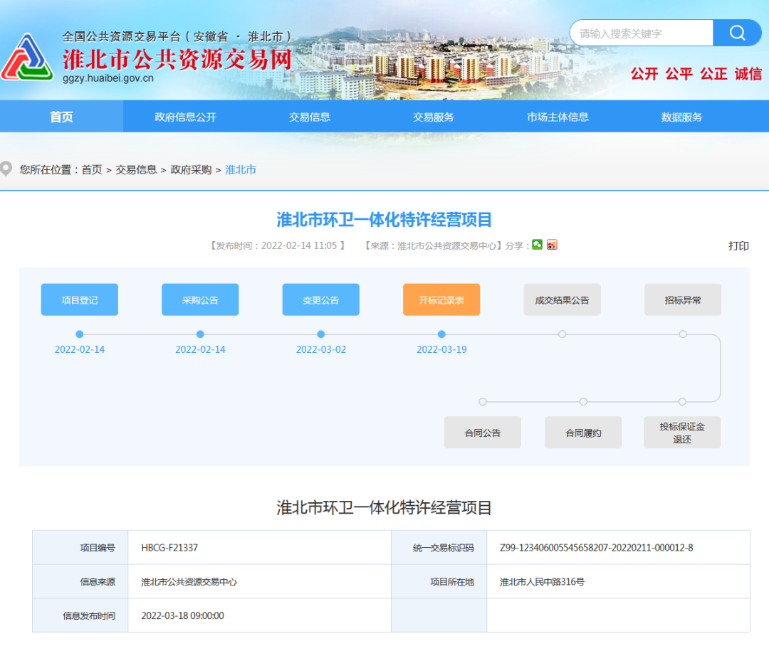 淮北市公共資源交易網(wǎng)消息,2022年3月19日,備受業(yè)內關注的淮北市環(huán)衛(wèi)一體化特許經營項目公布開標記錄表,共有40家企業(yè)投標。 中環(huán)潔、康潔科技集團、北控城市服務、中聯(lián)環(huán)境、福龍馬、僑銀股份、保利物業(yè)、福建東飛環(huán)境、啟迪環(huán)境、家寶園林、勁旅環(huán)境、徐工環(huán)境、中節(jié)能、傲藍得、美欣達、高能時代等眾多知名企...