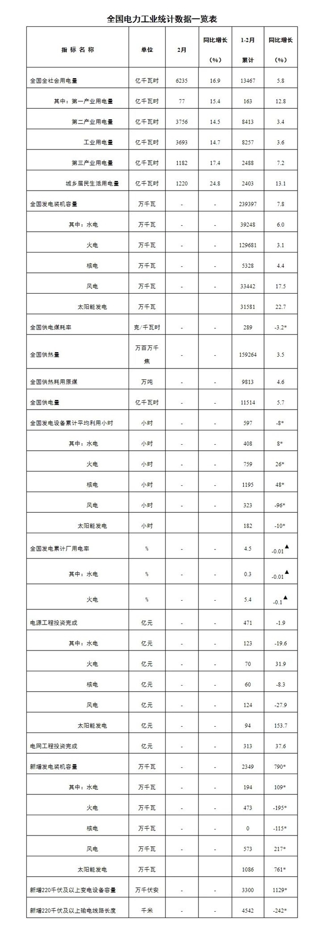 2022年3月21日,國家能源局發(fā)布1-2月份全國電力工業(yè)統(tǒng)計數(shù)據(jù)。截至2月底,全國發(fā)電裝機容量約23.9億千瓦,同比增長7.8%。其中,風電裝機容量約3.3億千瓦,同比增長17.5%;太陽能發(fā)電裝機容量約3.2億千瓦,同比增長22.7%。 1-2月份,全國發(fā)電設備累計平均利用597小時,比上年同期...