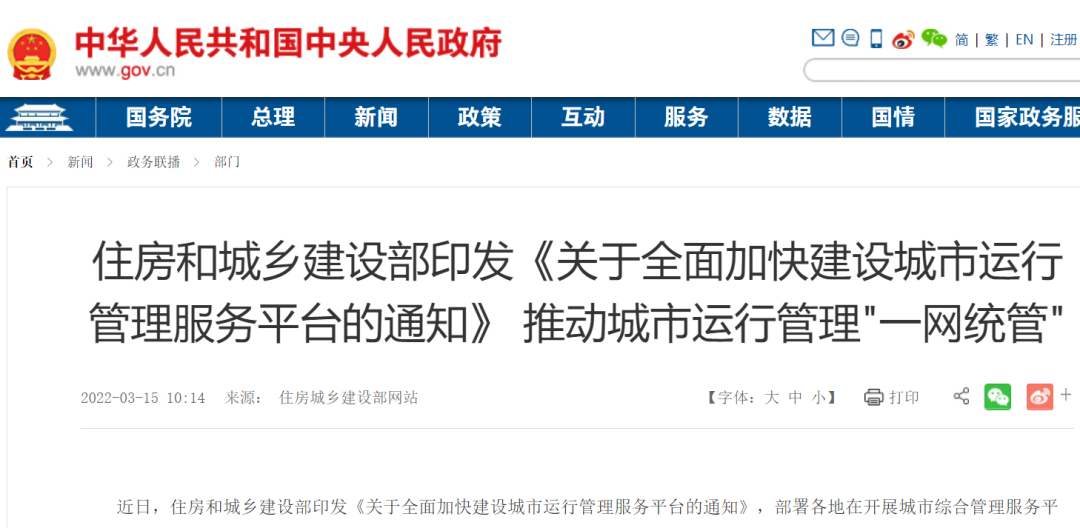 近日,住房和城鄉(xiāng)建設(shè)部印發(fā)《關(guān)于全面加快建設(shè)城市運(yùn)行管理服務(wù)平臺(tái)的通知》,部署各地在開展城市綜合管理服務(wù)平臺(tái)建設(shè)和聯(lián)網(wǎng)工作的基礎(chǔ)上,全面加快建設(shè)城市運(yùn)行管理服務(wù)平臺(tái),推動(dòng)城市運(yùn)行管理“一網(wǎng)統(tǒng)管”。 通知指出,建設(shè)城市運(yùn)管服平臺(tái),是貫徹落實(shí)習(xí)近平總書記重要指示批示精神和黨中央、國務(wù)院決策部署的重要舉措...