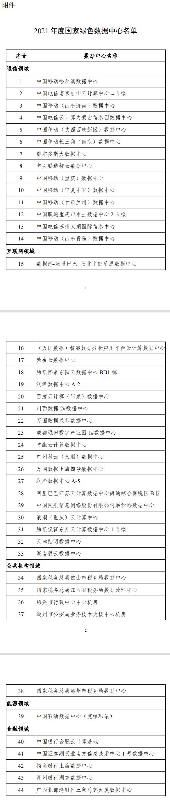 工業(yè)和信息化部等六部門公告 2022年第7號(hào) 為加快數(shù)據(jù)中心節(jié)能和能效提升,引導(dǎo)數(shù)據(jù)中心走高效、低碳、集約、循環(huán)的綠色發(fā)展道路,助力實(shí)現(xiàn)碳達(dá)峰、碳中和目標(biāo),工業(yè)和信息化部、國家發(fā)展和改革委員會(huì)、商務(wù)部、國家機(jī)關(guān)事務(wù)管理局、中國銀行保險(xiǎn)監(jiān)督管理委員會(huì)、國家能源局確定了44家2021年度國家綠色數(shù)據(jù)中心...