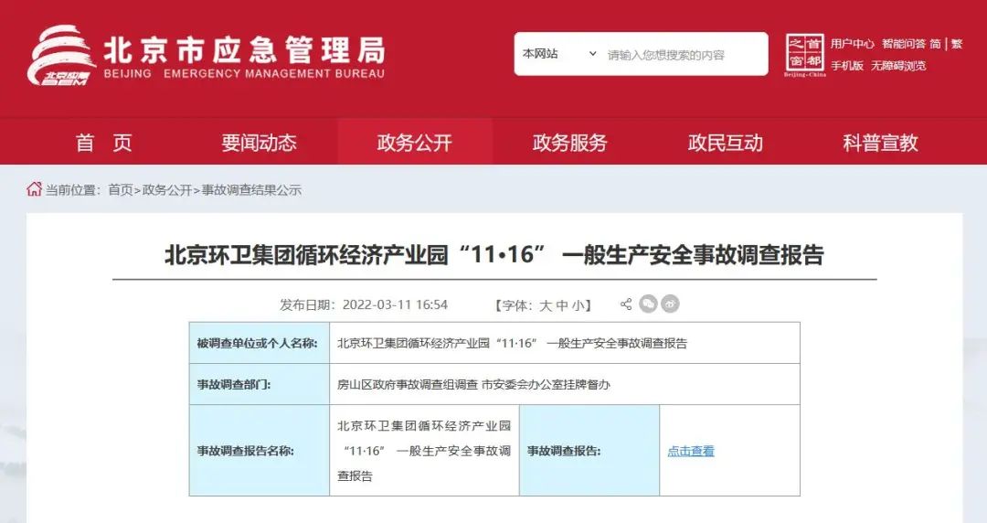 日前,北京市應(yīng)急管理局公布北京環(huán)衛(wèi)集團(tuán)循環(huán)經(jīng)濟(jì)產(chǎn)業(yè)園“11·16”一般生產(chǎn)安全事故調(diào)查報(bào)告。報(bào)告顯示,2021年11月16日,位于房山區(qū)佛子莊鄉(xiāng)的北京環(huán)衛(wèi)集團(tuán)循環(huán)經(jīng)濟(jì)產(chǎn)業(yè)園內(nèi)發(fā)生一起有限空間中毒事故,造成2人死亡,1人受傷。 調(diào)查組認(rèn)定,該起事故是一起因違章作業(yè)和違規(guī)盲目施救導(dǎo)致的一般生產(chǎn)安全責(zé)任事...