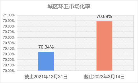 環(huán)境司南數(shù)據(jù)監(jiān)測顯示,截止2022年3月14日,全國完成城區(qū)(首輪)環(huán)衛(wèi)市場化改革的區(qū)縣增至2022個,與2021年年底相比,增加16個區(qū)縣,城區(qū)環(huán)衛(wèi)市場化率提升至70.89%。 截止2021年12月31日,全國完成城區(qū)(首輪)環(huán)衛(wèi)市場化改革的區(qū)縣數(shù)量為2006個,城區(qū)環(huán)衛(wèi)市場化率為70.34%。 ...