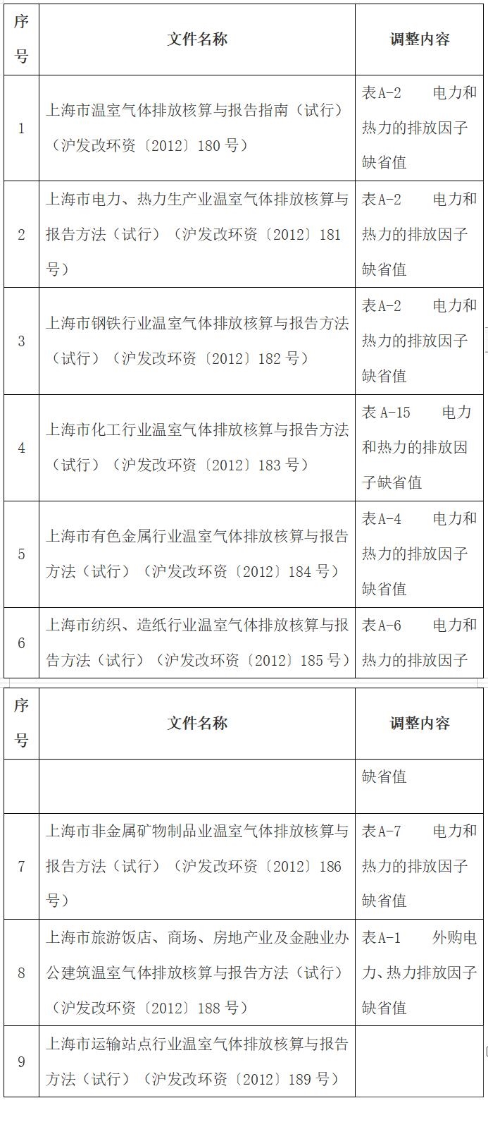 上海市生態(tài)環(huán)境局關(guān)于調(diào)整本市溫室氣體排放核算指南相關(guān)排放因子數(shù)值的通知 滬環(huán)氣〔2022〕34號各有關(guān)單位: 為加快推進(jìn)本市碳排放統(tǒng)計(jì)核算體系的統(tǒng)一規(guī)范建設(shè),經(jīng)研究,決定將本市溫室氣體排放核算與報(bào)告指南和行業(yè)方法中電力、熱力的排放因子缺省值進(jìn)行調(diào)整。采用相關(guān)行業(yè)方法(詳見附件),核算使用外購電力、熱...