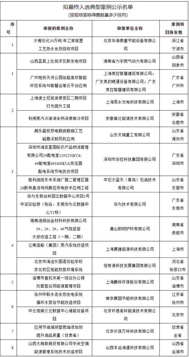 國家節(jié)能中心公布第三屆重點(diǎn)節(jié)能技術(shù)應(yīng)用典型案例擬最終入選典型案例名單!
