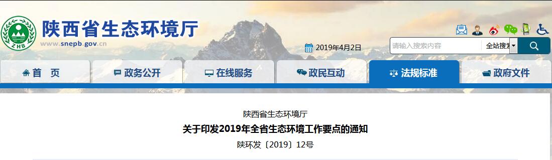 陜西省生態(tài)環(huán)境廳關(guān)于印發(fā)2019年全省生態(tài)環(huán)境工作要點(diǎn)的通知