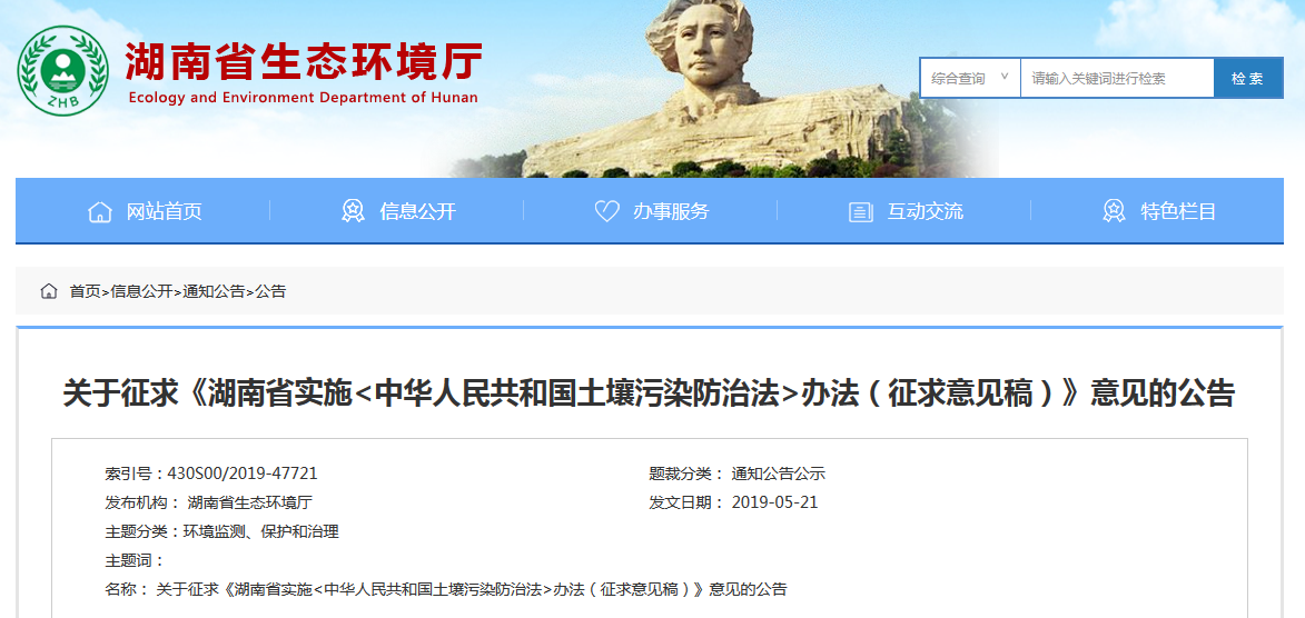 《湖南省實(shí)施<中華人民共和國(guó)土壤污染防治法>辦法(征求意見(jiàn)稿)》下發(fā)