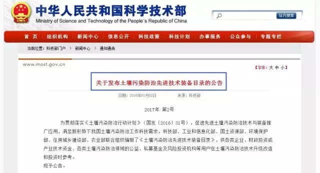 1月2日,科技部發(fā)布了土壤污染防治先進(jìn)技術(shù)裝備目錄的公告。由科技部、工業(yè)和信息化部、國(guó)土資源部、環(huán)境保護(hù)部、住房城鄉(xiāng)建設(shè)部、農(nóng)業(yè)部聯(lián)合組織編制的《土壤污染防治先進(jìn)技術(shù)裝備目錄》,旨在促進(jìn)先進(jìn)土壤污染防治技術(shù)與裝備推廣應(yīng)用,滿足新形勢(shì)下我國(guó)土壤污染防治工作科技需求。裝備目錄共有15種先進(jìn)技術(shù)裝備,包括...