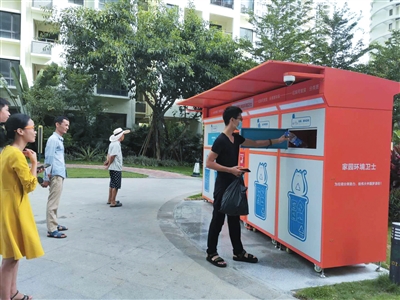 居民正在使用智能垃圾分類柜投放垃圾。符吉茂 攝“既環(huán)保,又能換錢,還能提高我們的垃圾分類意識(shí)和分類正確率,一舉多得,這個(gè)智能垃圾分類柜值得點(diǎn)贊。”6月26日,家住崖州區(qū)保利·崖州灣小區(qū)居民候東將一個(gè)礦泉水瓶投進(jìn)“大胃貓”智能垃圾分類柜后笑著說。日前,為助力三亞市生活垃圾分類工作,建設(shè)“無廢城市”,崖...