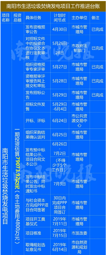 日前,記者從南陽市城市管理局獲悉,南陽市生活垃圾焚燒發(fā)電PPP項(xiàng)目前期推進(jìn)工作正在有序進(jìn)行,該項(xiàng)目擬定于7月11左右開工。南陽市生活垃圾焚燒發(fā)電PPP項(xiàng)目概況項(xiàng)目地址:服從南陽市固廢綜合處理生態(tài)產(chǎn)業(yè)園區(qū)(暨南陽市生態(tài)環(huán)保靜脈產(chǎn)業(yè)園區(qū))統(tǒng)一規(guī)劃,本項(xiàng)目建設(shè)廠址位于南陽市生態(tài)環(huán)保靜脈產(chǎn)業(yè)園區(qū)內(nèi),園區(qū)位于...