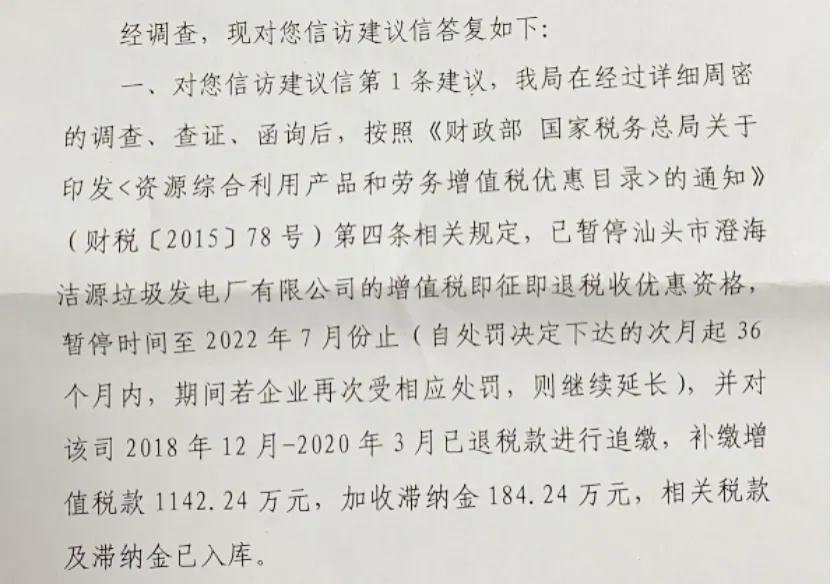 違規(guī)垃圾焚燒企業(yè)不得享受增值稅退稅政策執(zhí)行情況觀察