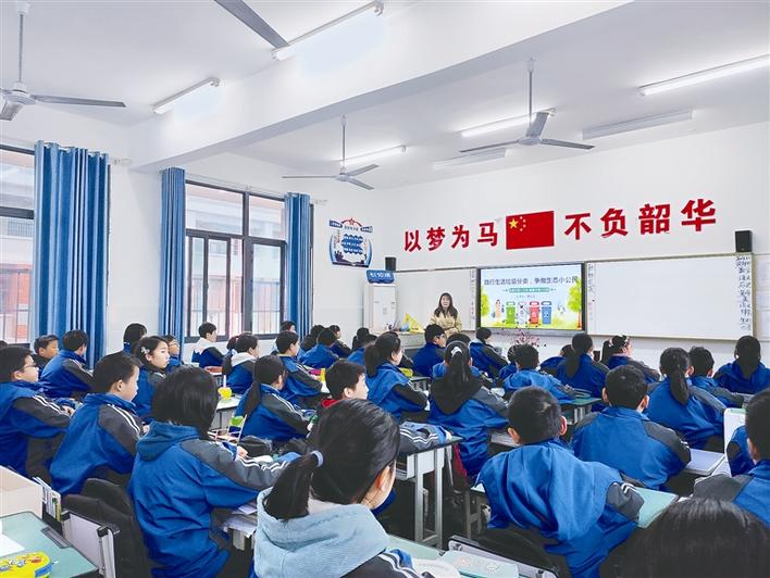 “你覺得垃圾分類是什么?”“是一種生活習(xí)慣,是一種新時(shí)尚……”“我們應(yīng)該怎么做?”“不同的垃圾分類投放,平時(shí)雙面用紙,不剩飯,減少垃圾產(chǎn)生。”3月11日上午,在宜昌市夷陵區(qū)東湖初中七年級十班的教室里,生態(tài)小公民任課教師穆云云結(jié)合多媒體課件,正為同學(xué)們講解生活垃圾分類知識,還時(shí)不時(shí)以問答的形式與學(xué)生互...